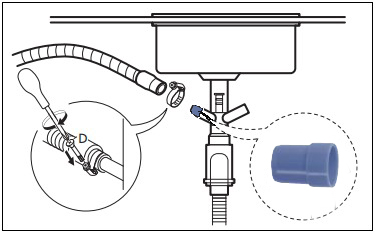 Deschideți alimentarea unde furtunul de evacuare este conectat la sifonul de scurgere, scoateți dopul și conectați la loc alimentarea sifonului de scurgere.